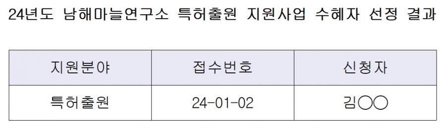 24년도 남해마늘연구소 특허출원 지원사업 수혜자 선정 결과 공고