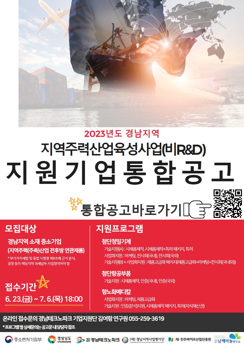 2023년도 경남지역 지역주력산업육성사업 지원기업 통합공고