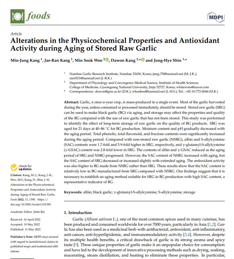 학술지 게재 논문(2022년) : Alterations in the Physicochemical Properties and A…
