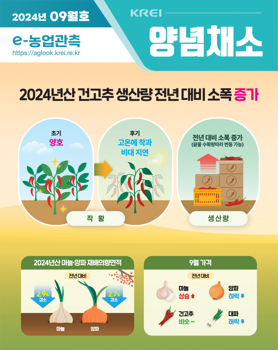 - 양 파: 9월 가격은 출하량 증가로 전년 대비 하락 전망